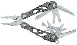 nspired by the bridges of Gerber's hometown in Portland, Oregon, the Suspension is an open frame multi-tool with spring-loaded pliers, their SAF.T.PLUS locking system, a fine-edge knife, serrated knife, rough cut saw and more. Housed in a ballistic nylon sheath, it's a lightweight down-and-dirty workhorse.