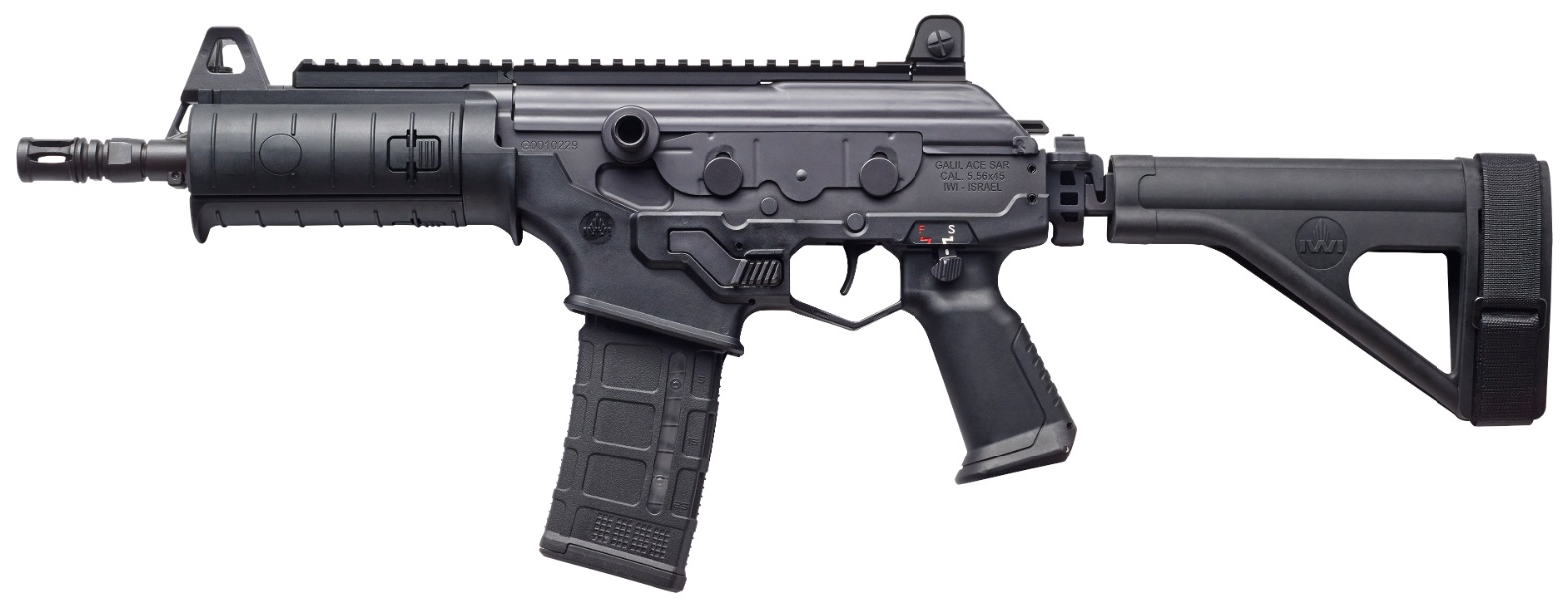 GALIL ACE PISTOL 5.56MM BRACE SIDE FOLDING STABILIZING BRACE • Tri-Rail Forearm w/ Covers • Side Folding Stabilizing Brace •